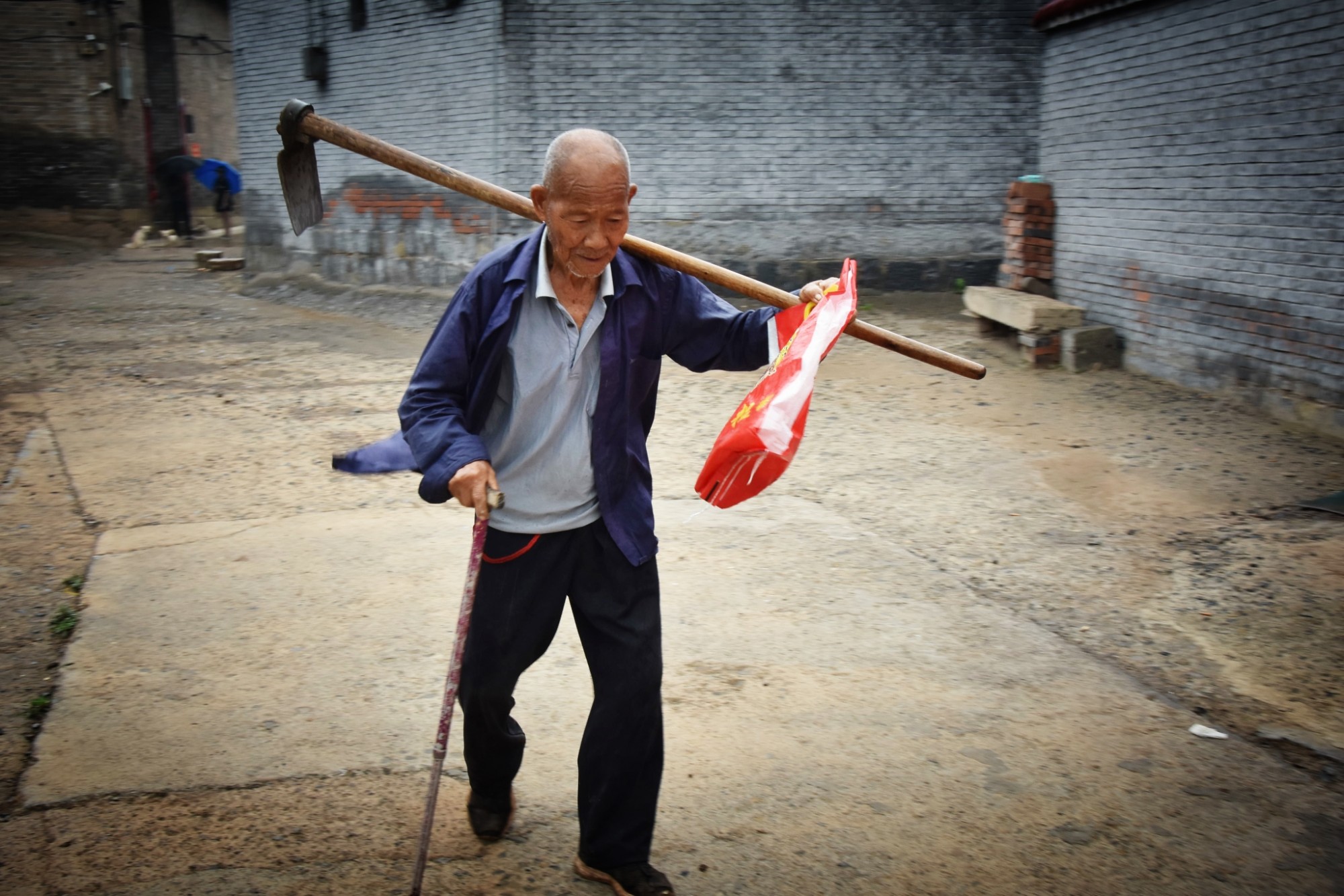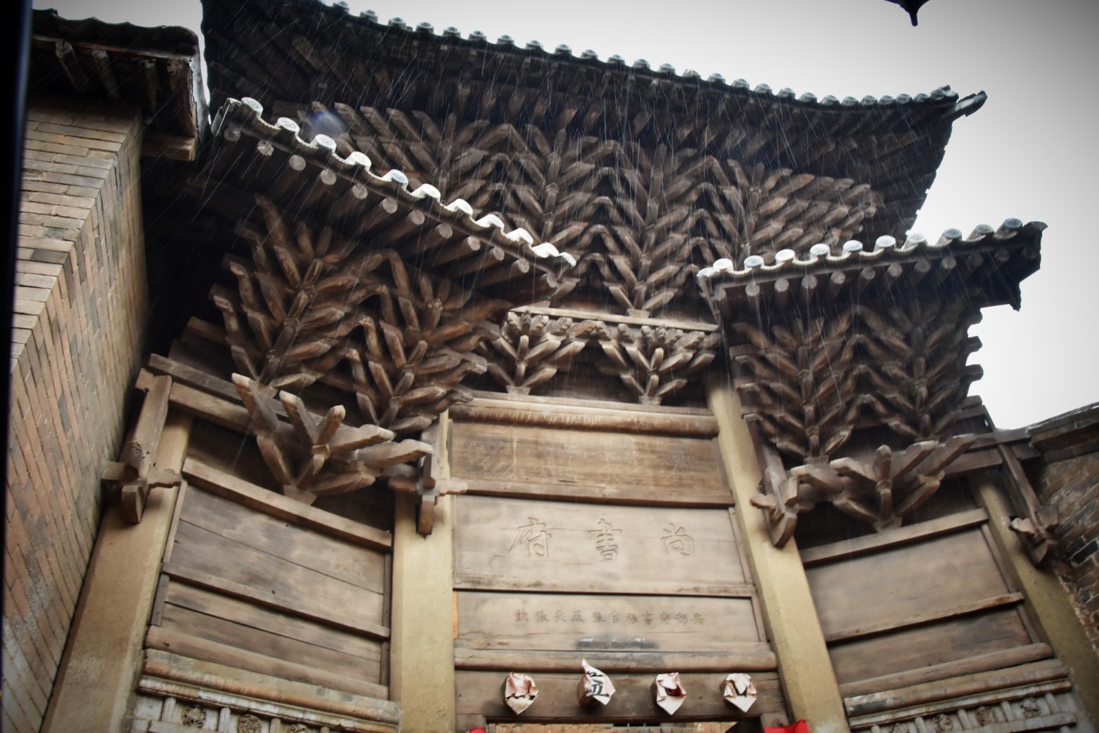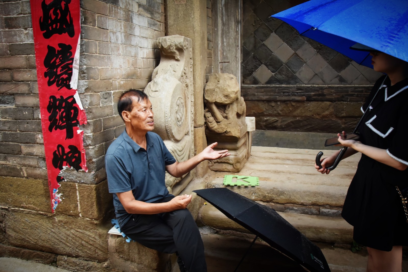 外面的雨越下越大,老人讲述窦庄古堡的热情依然不减。他告诉我们要想讲完窦庄的这些院落可能得花上六七个小时呢!在路上我们碰到了一位步伐矫健的老人,他兴冲冲的和我们说道:“这是我们窦庄的百岁老人,老爷子身体好呀,一百岁了每天背着锄头到地里做农活,谁问年纪都只说92了”。老人腿脚很不错,我们加快步伐才追上,同他问了个好,才算作罢。