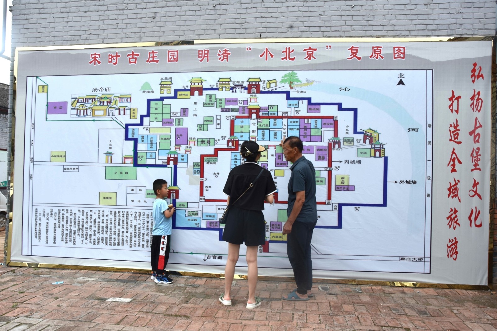撑伞踩着雨走在窦庄的街巷间,他谈起了窦庄的建村理念,与如今从内至外扩建的风格不同,窦庄外城修建于北宋时期,在窦氏家族的规划下,首先确定了村子的范围,旧时城内曾为窦氏练兵场,以中国传统八卦的方位,窦氏兄弟四人以东南西北各为一边修建起宅院,形同《水浒传》中“祝家庄”式全封闭庄园式村落,可惜外城在70年代已经毁坏,如今只剩下一些遗址。时至元代张氏家族迁于此,同窦氏家族世代结为姻亲,到明朝时张氏财力势力逐渐超越窦氏,张氏家族太子太保、兵部尚书张五典告老还乡后,洞察天下可能即将大乱,便在旧城内建起内城,城内修建起、票号、商铺、书房、讲堂、庙宇、民宅、药铺等建筑,各项功能齐全,现在城内还有各种古建筑共计72处。