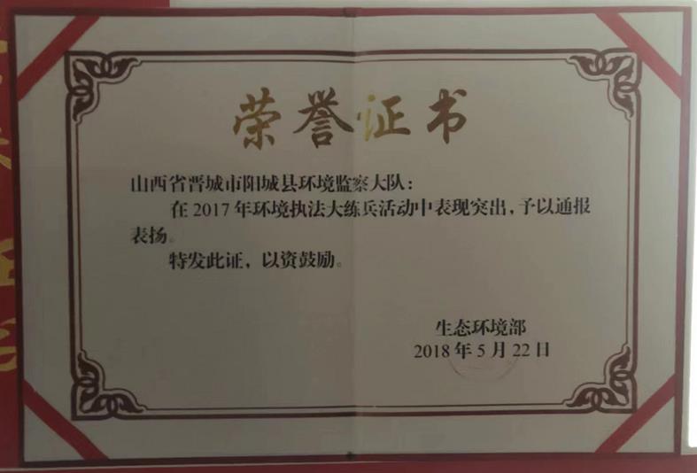 • 该执法队先后5人被山西省生态环境厅表彰为“生态环境保护执法大练兵先进个人”。