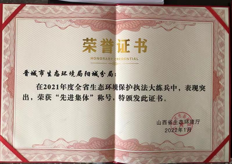 • 2021年被山西省生态环境厅表彰为“生态环境保护执法大练兵先进集体”称号