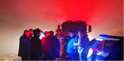 夜晚温度骤降,山里温度低,大雾弥漫,能见度不足十米,队员们摸着夜色驾车于23时40分到达事发地核桃园村附近。