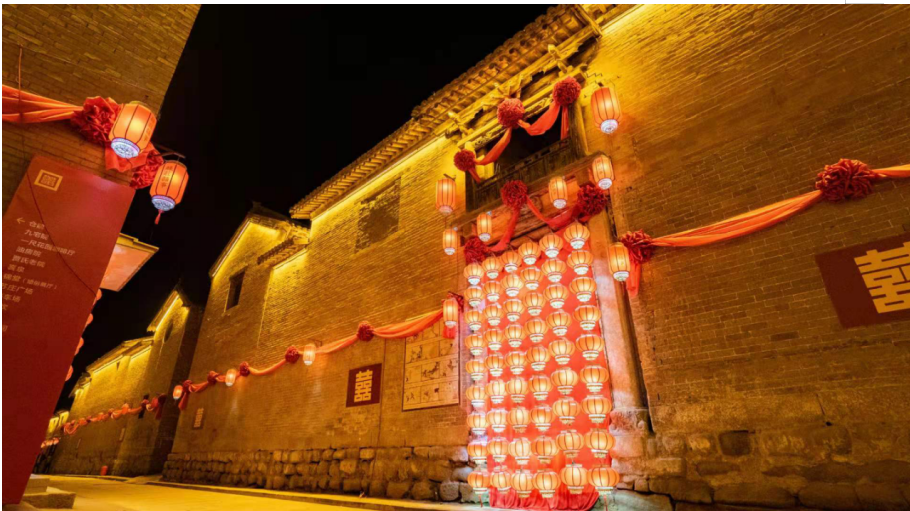 走进苏庄,民居古建星罗棋布、古街老巷旧貌犹存,干净整洁的道路、古色古香的庭院,点缀着喜庆的灯笼和红绸,随处可见的大红喜字大红灯笼,都给人以极大的视觉冲击。