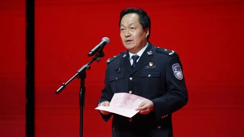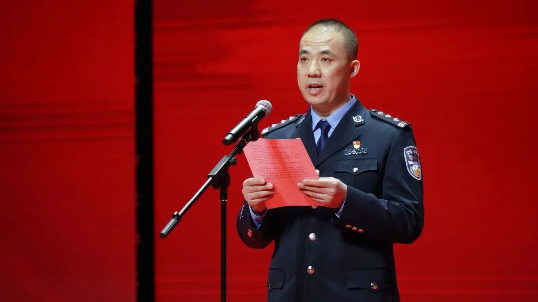 市公安局党委委员、交警支队支队长陈占光致辞,交警支队党总支副书记、政委吴洪海宣读受表彰先进名单。