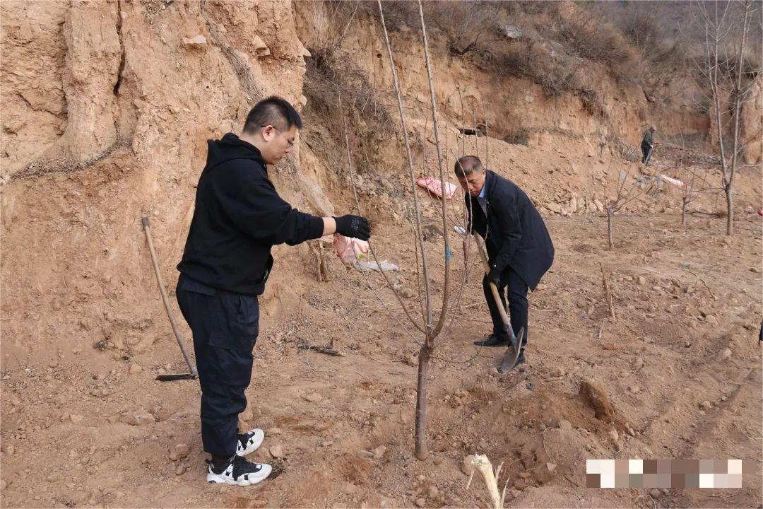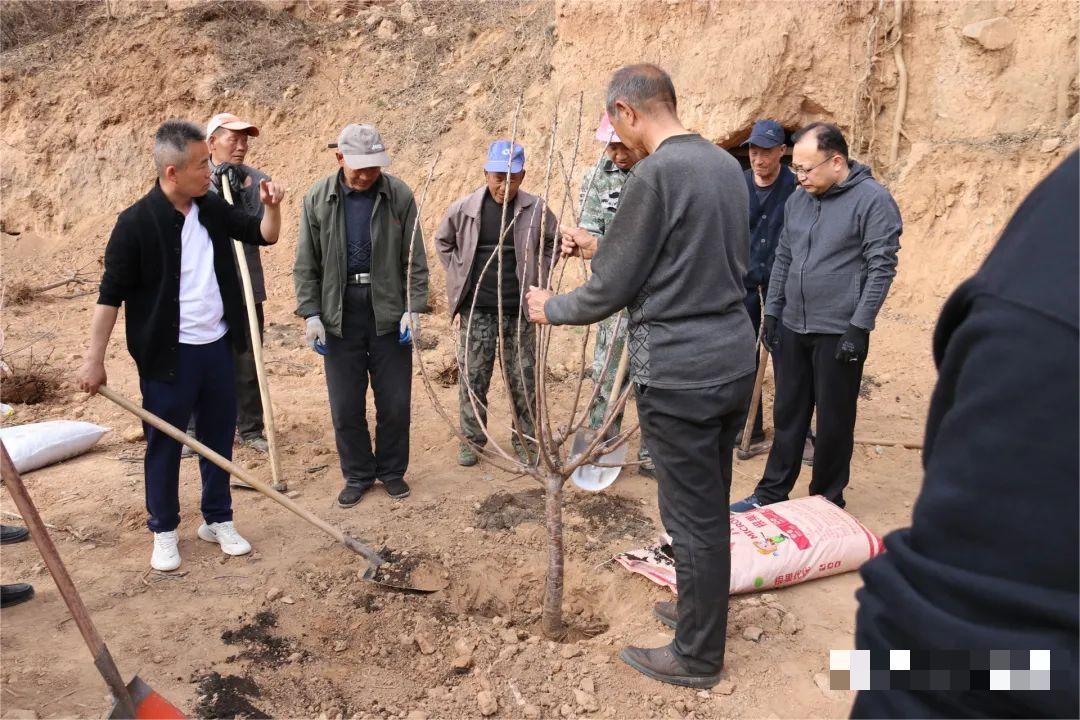 眼下正是春季植树造林的黄金期,在柳树口镇南庄村,泽州县乡村振兴中心工作人员带领专业技术人员正在帮助当地老百姓种植樱桃树,助力发展“庭院经济”,一派人勤春来早的忙碌景象。