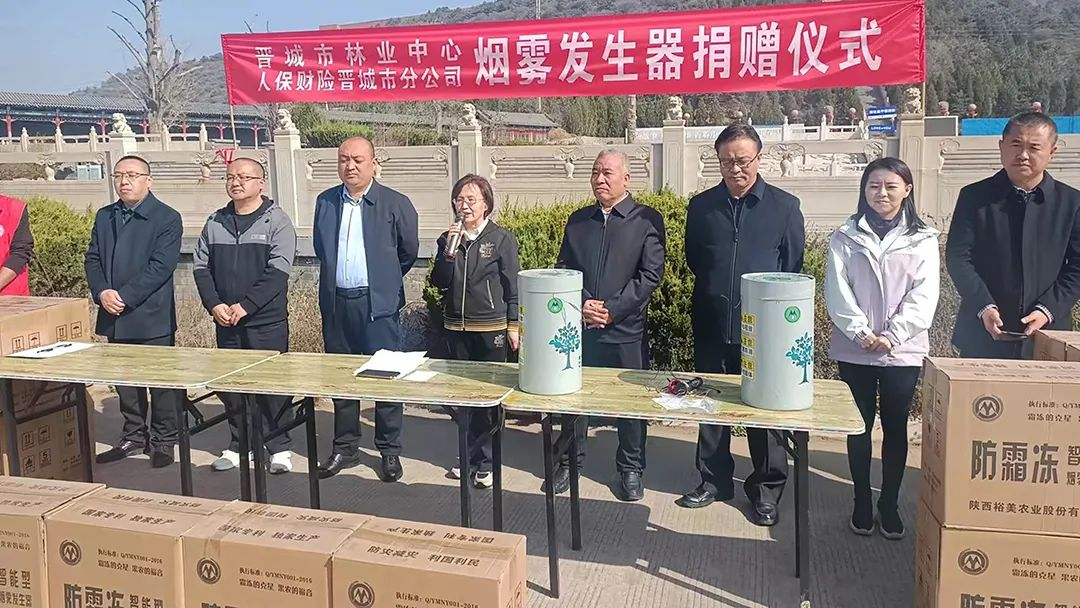 培训会上,为科技助力核桃树防霜冻,人保财险晋城分公司还向全市核桃种植大户捐赠了100套防霜冻智能型烟雾发生器。