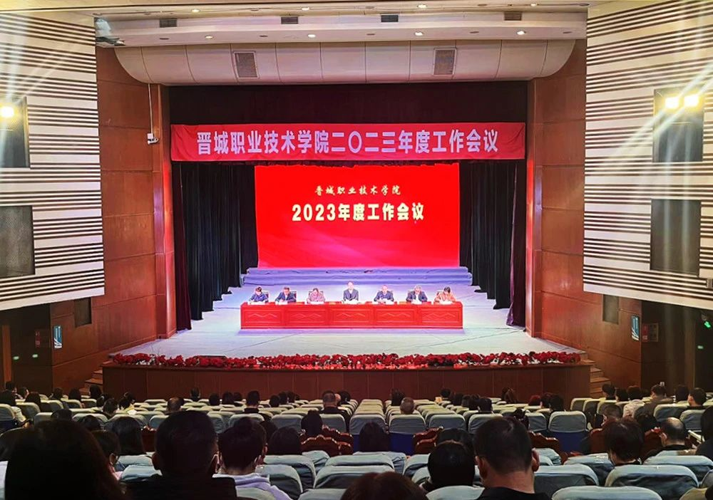 4月7日,晋城职业技术学院在排演厅召开2023年度工作会议,回顾总结2022年学院工作,分析研判当前形势,安排部署2023年工作。党委书记邱建国到会并讲话,党委副书记、院长姬爱国作报告,党委委员、副院长毕文才主持会议,党委委员、纪委书记王殿梅,党委委员、副院长王宏亮,党委委员、宣传部部长闫云云,党委委员、组织人事部部长常霞出席会议。各处室系负责人,部分行政人员及教师参加会议。