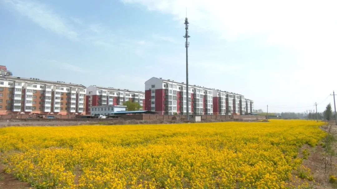 在南岭镇李寨村东头地块,大片的油菜花竞相开放,明黄的花串与翠绿的茎干有层次地展开。一阵微风拂过,油菜花随风摇曳,仿佛身姿曼妙的少女。登高远望,金灿灿的油菜花连成片片花海,与花田旁的雪白梨花交相辉映,将春日的田野妆点得愈加精致。