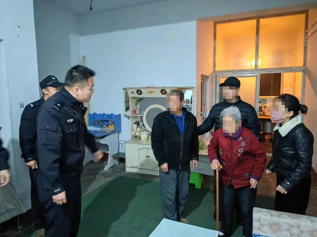 处警民警王朔在找到老人护送回家后,全家人提着的心终于放下来了。