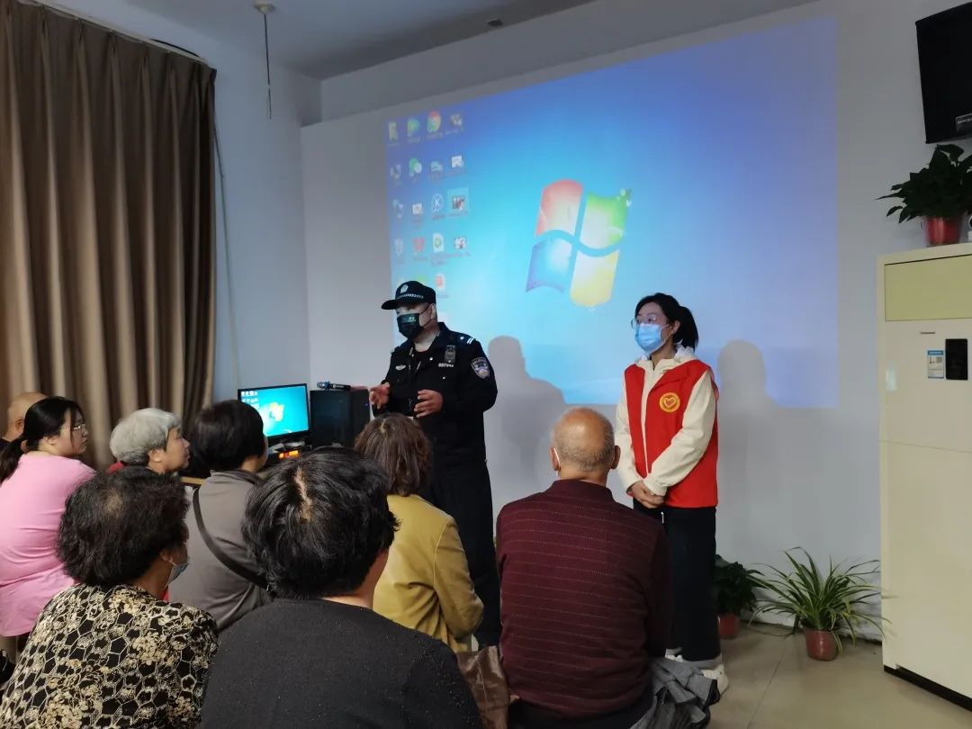 5月3日上午,成庄派出所“蓝焰义警”反诈宣传员,将宣传工作战线拉到被骗率最高的退休老人中,走进华阳小区,开设了一堂反诈宣传课。