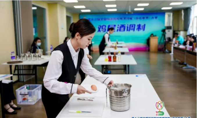 比赛设有中餐宴会摆台、西餐宴会摆台、鸡尾酒调制和中式铺床4个赛项,分为综合理论知识考试、现场操作和英语口语测试3个比赛环节。张可心、李佳敏、张雅妮和刘思妤4名同学在比赛过程中,与国内一流旅游职业院校的同学同台竞技、同台交流、同步提高,严格遵守比赛规则,按章参赛、谦谦有礼,充分彰显了晋职学子的专业技能和青春风采。