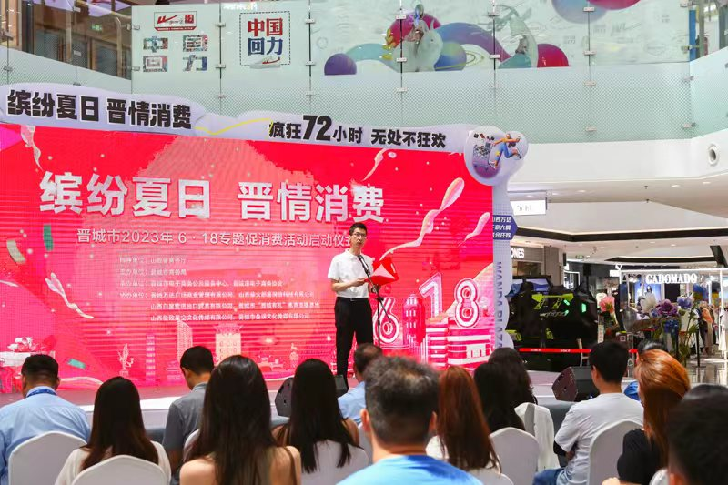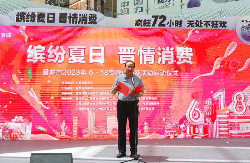 【晋城讯】6月15日上午,晋城市2023“缤纷夏日·晋情消费”6·18专题促消费活动启动仪式在万达广场举行。省商务厅二级巡视员赵常青、市商务局党组书记、局长王秀峰出席启动仪式并讲话。